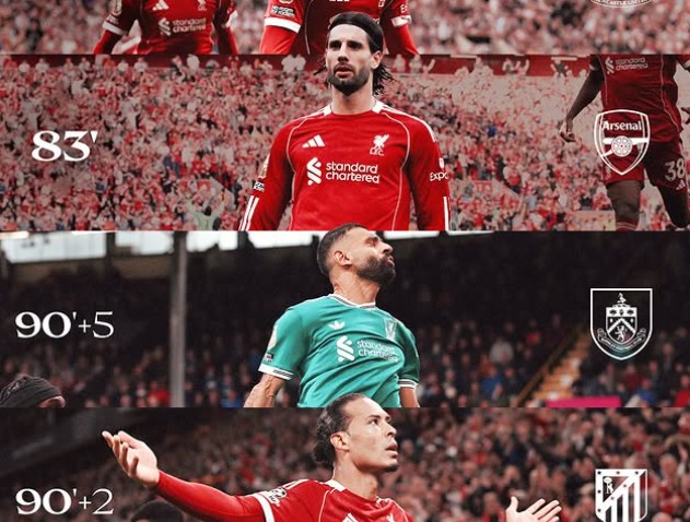 Federico Chiesas vinnermål mot Bournemouth, Rio Ngumohas scoring mot Newcastle, Dominik Szoboszlais frispark mot Arsenal, Salahs straffespark mot Burnley og van Dijks heading mot Atletico Madrid har alle vunnet kamper for Liverpool etter det 80. minutt denne sesongen.
